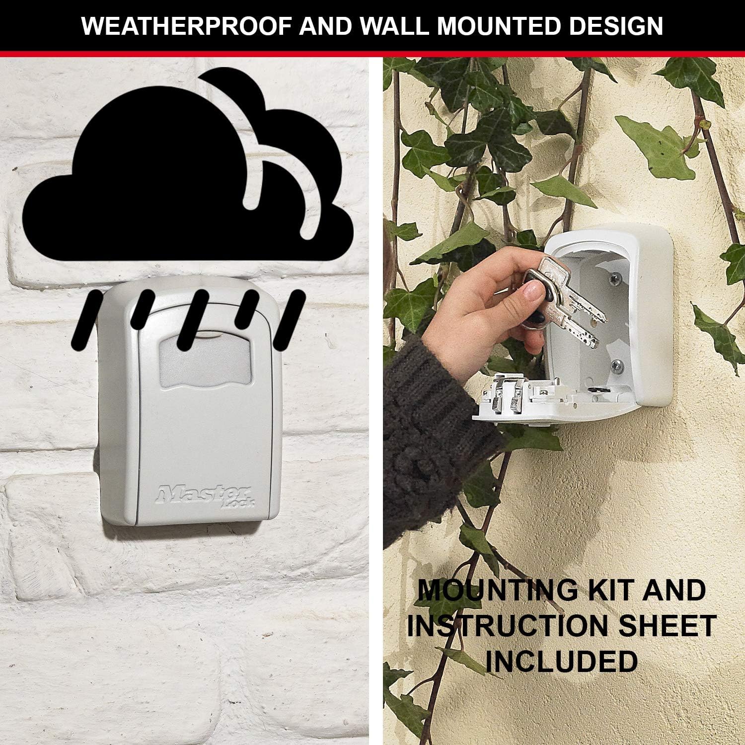 Skrytka na klucze MasterLock posiada wytrzymały metalowy korpus o szerokości 8,1 cm, które zapewnia przechowywanie kluczy w bezpieczny sposób