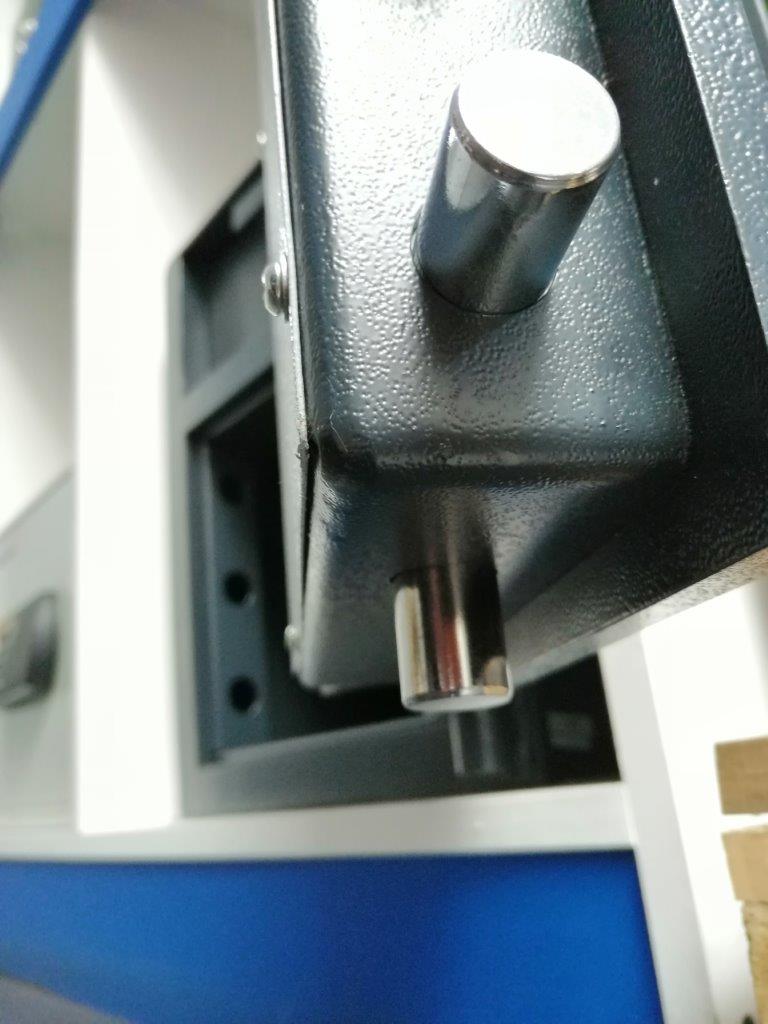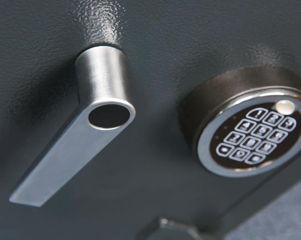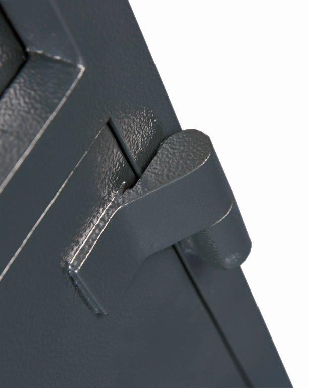 - Dodatkowa płyta antyprzewierceniowa znajdująca się bezpośrednio pod zamkiem oraz tzw. "relocker", czyli blokada uruchamiana przy próbie sforsowania mechanizmu ryglowego. Przy włamaniu sprężyna aktywuje wałek stalowy, który zostaje wystrzelony i blokuje możliwość obrotu klamki i schowania rygli, czyli otwarcia sejfu.